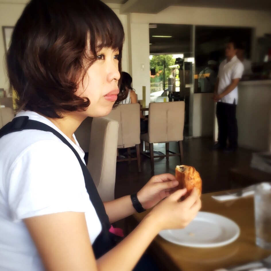 フィリピン滞在中、数カ月ぶりに本格的なクロワッサンを食べて、そのおいしさに感動して泣きそうな図。笑